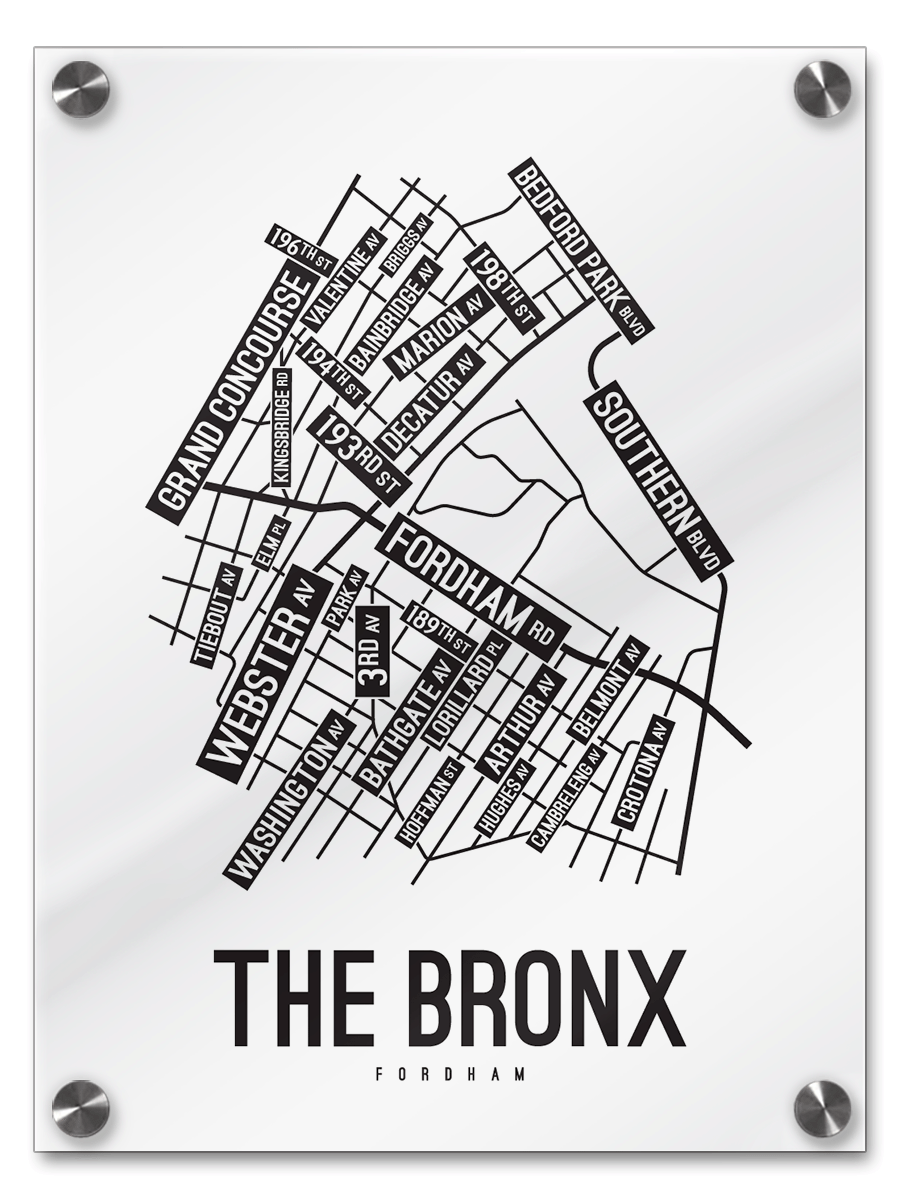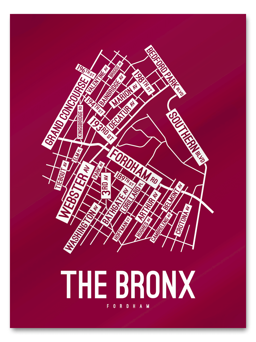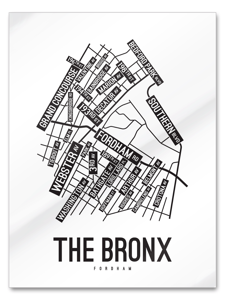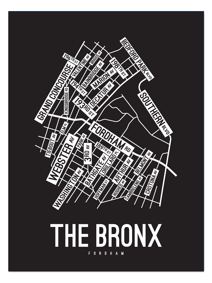 Our map of The Bronx features the streets and avenues around Fordham Road, Webster Ave, and Southern Blvd.