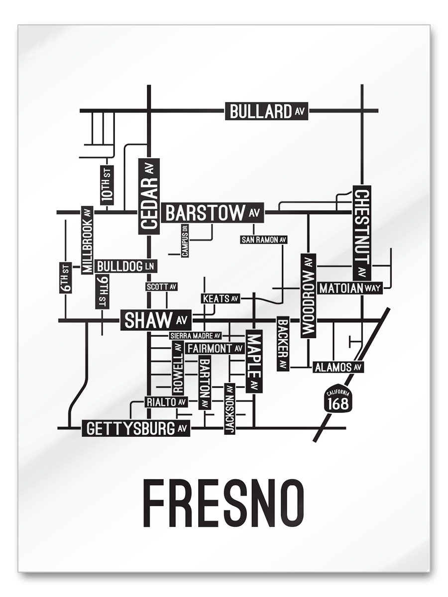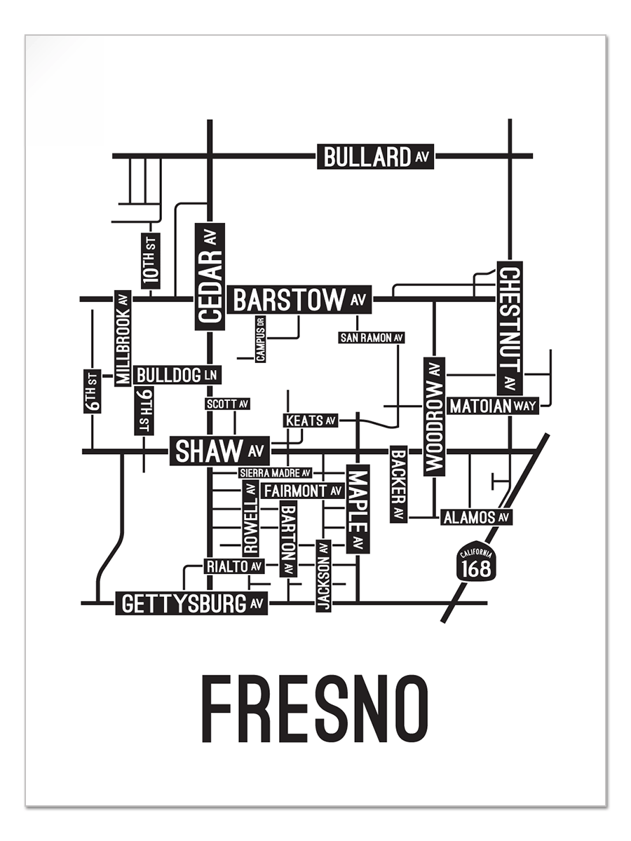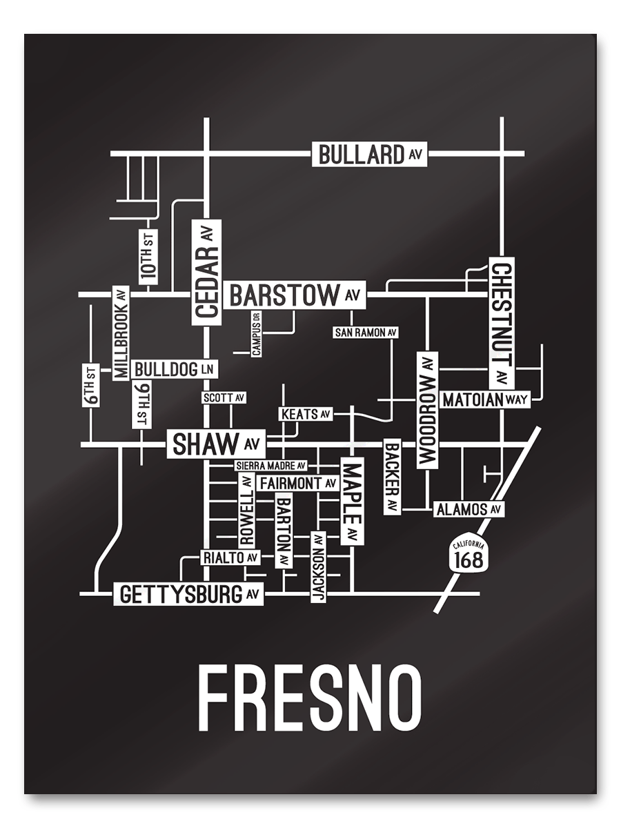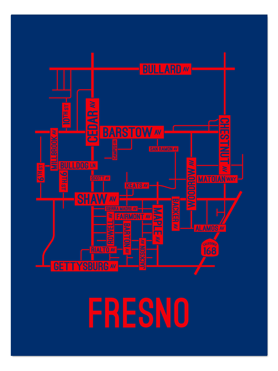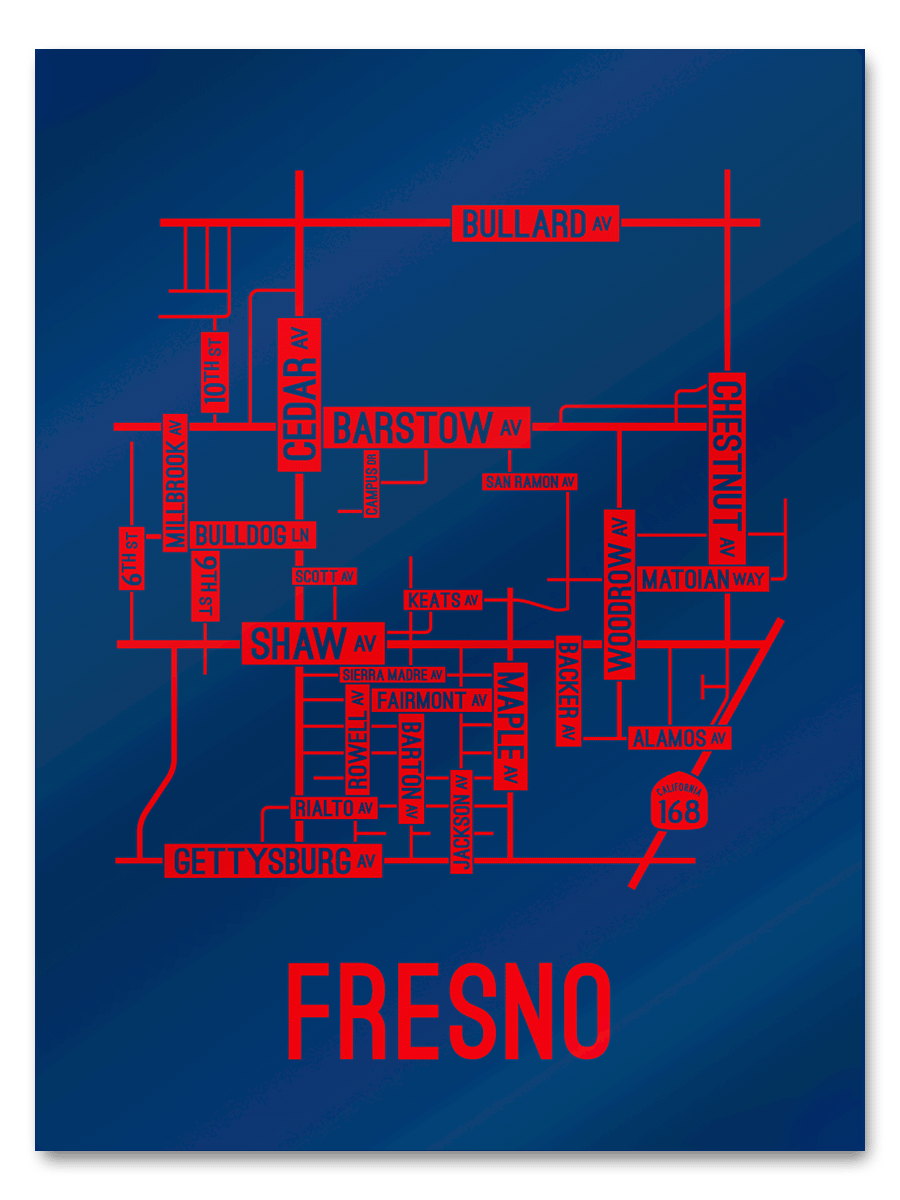 Our Fresno, California street map is a tribute to the streets and avenues around Barstow, Cedar, and Shaw Ave.