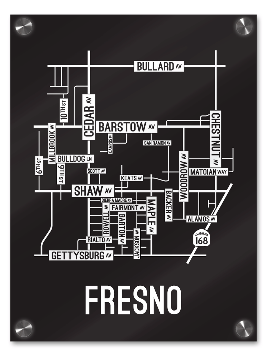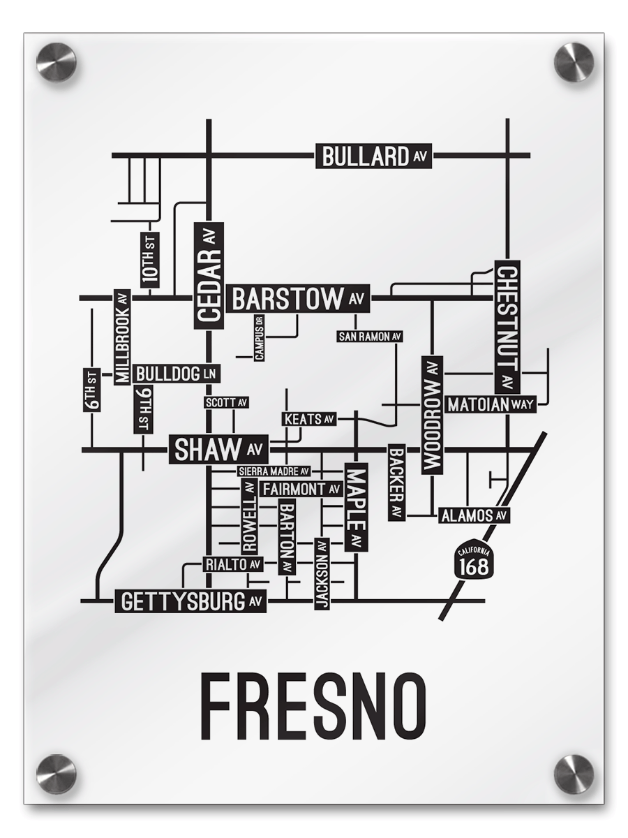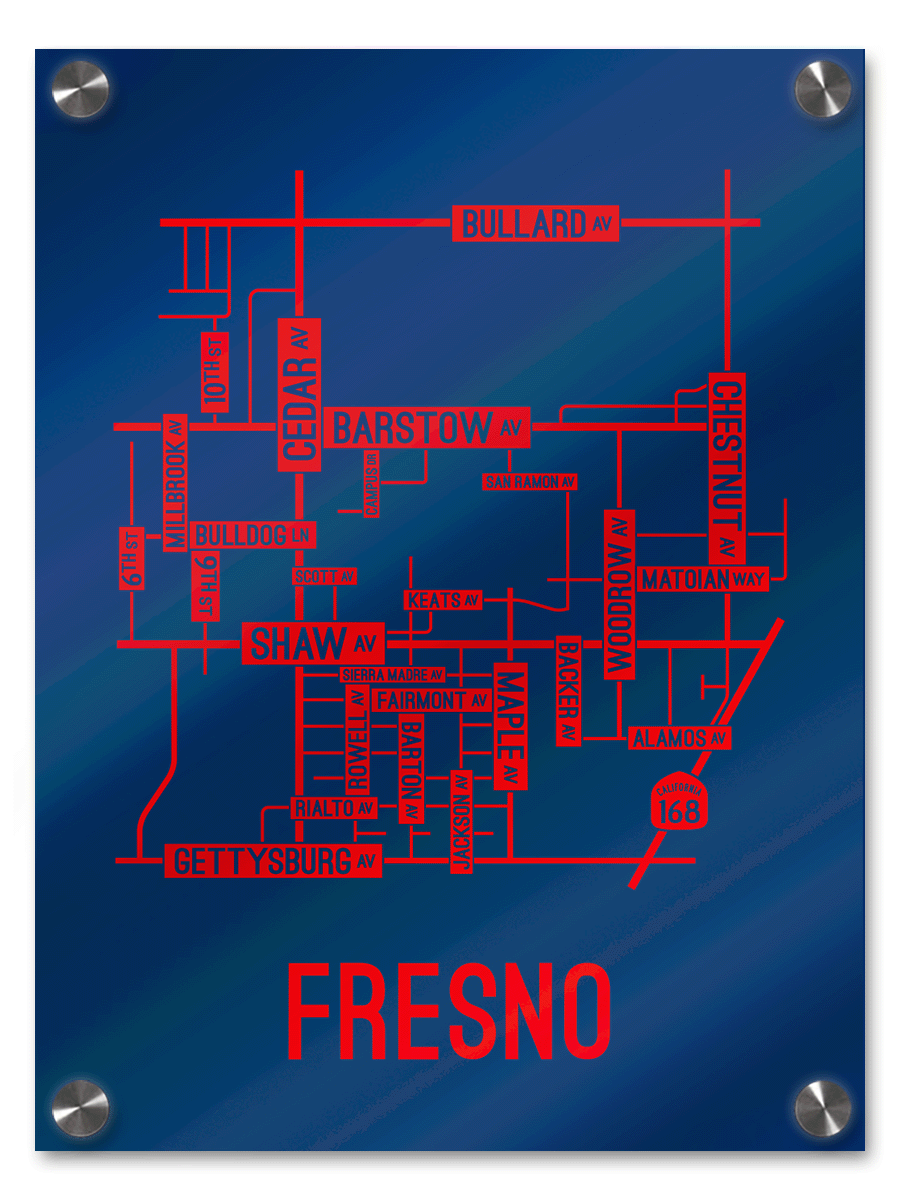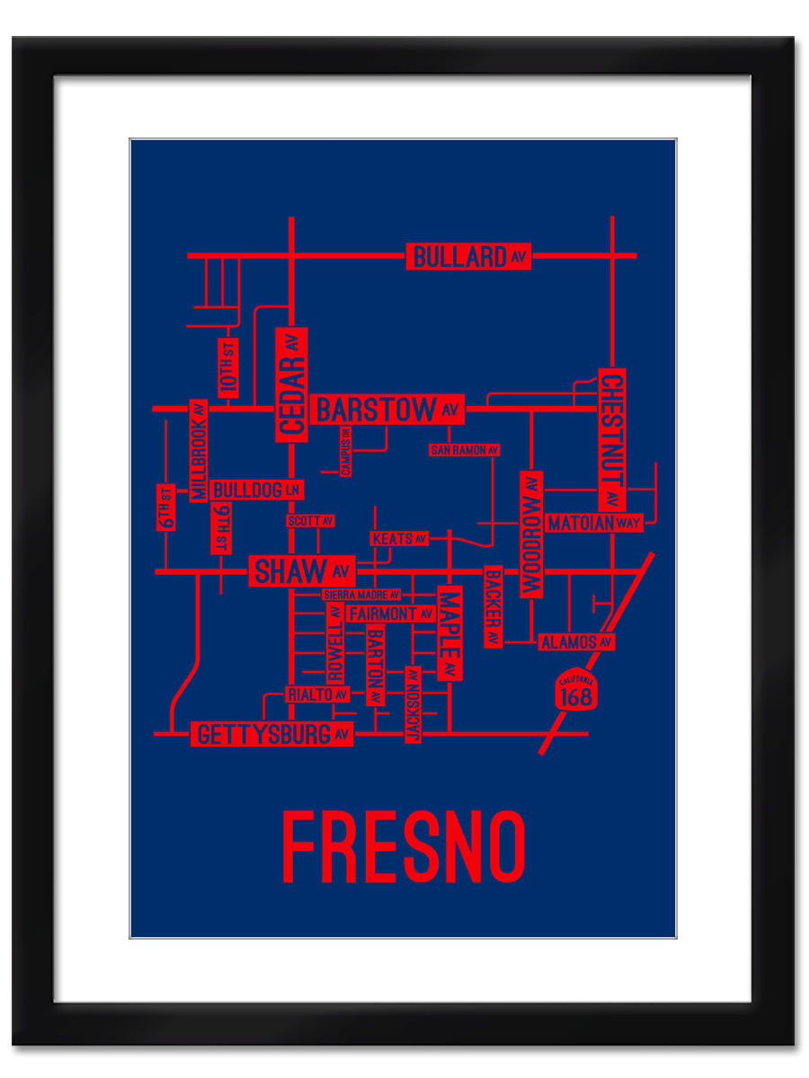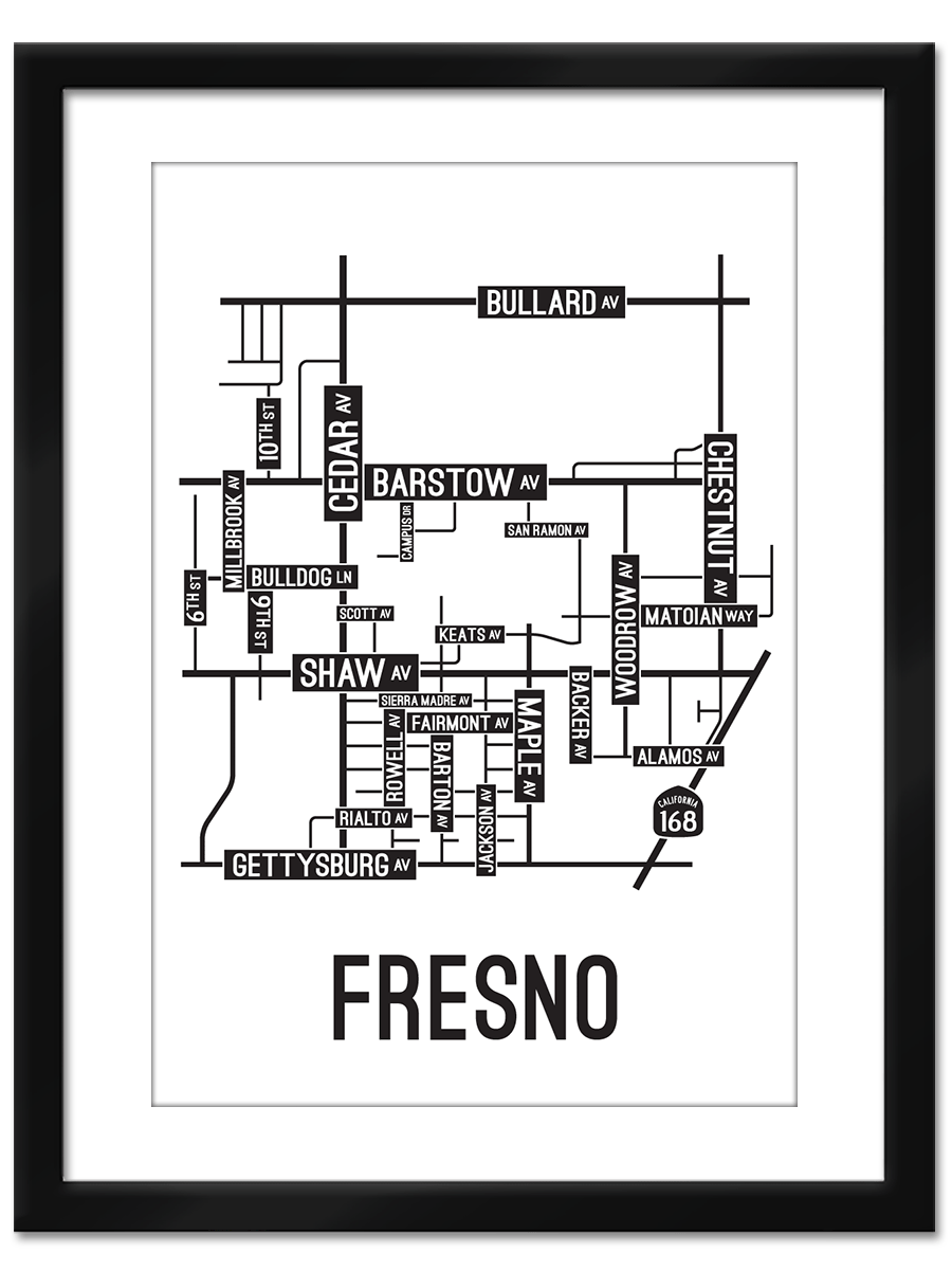 Our Fresno, California street map is a tribute to the streets and avenues around Barstow, Cedar, and Shaw Ave.