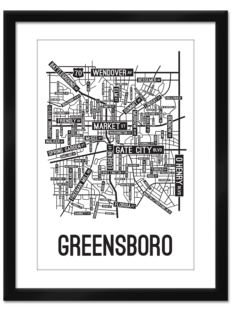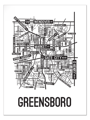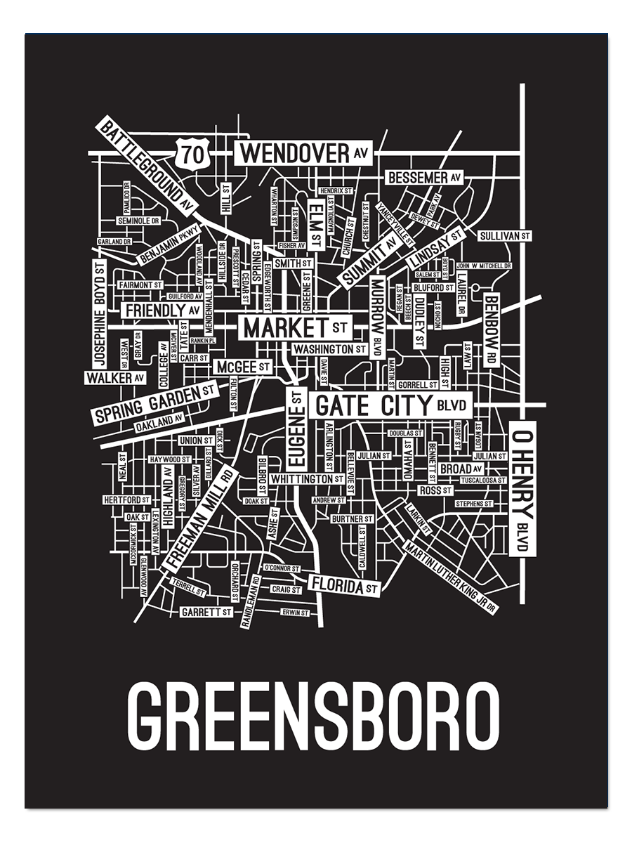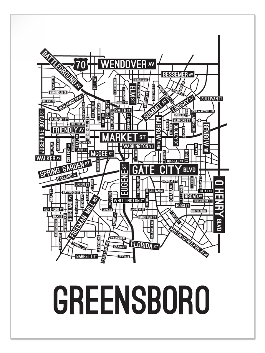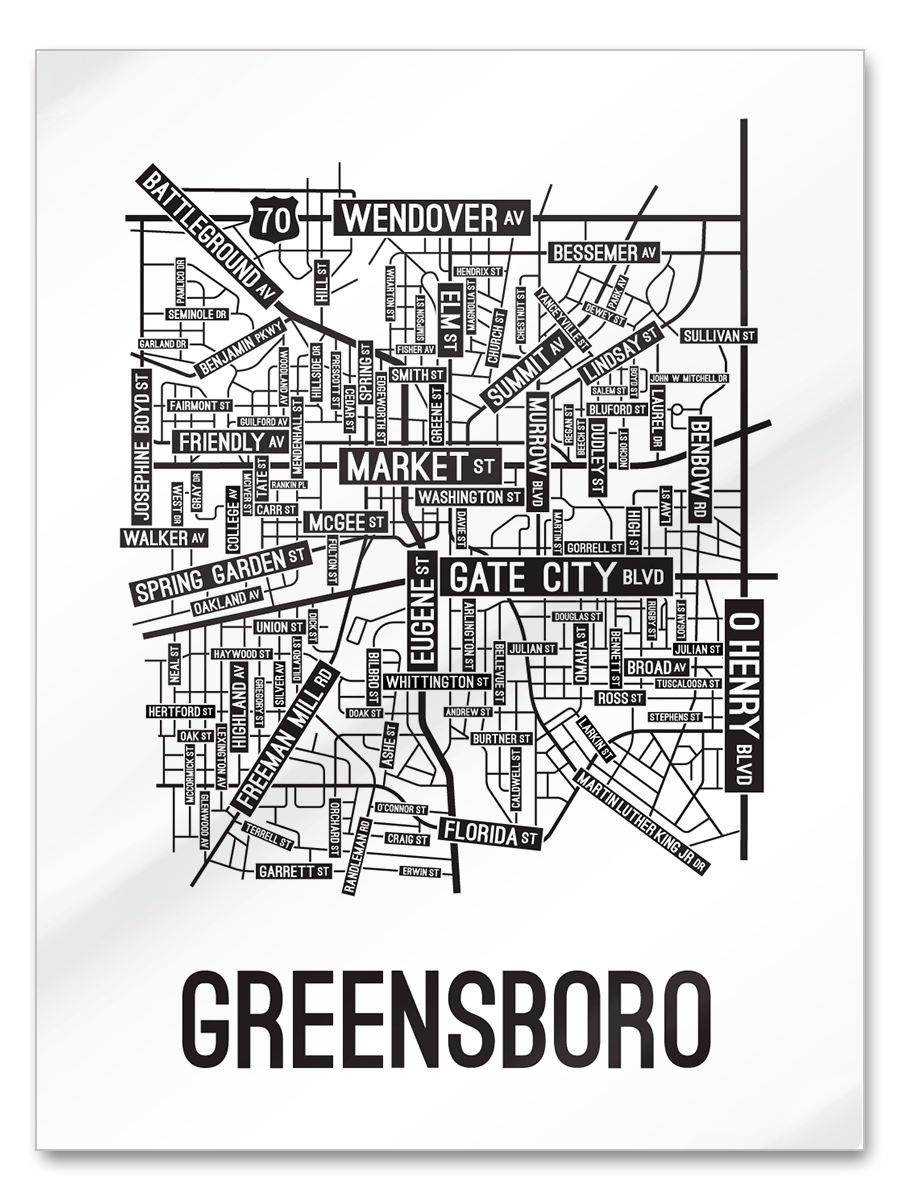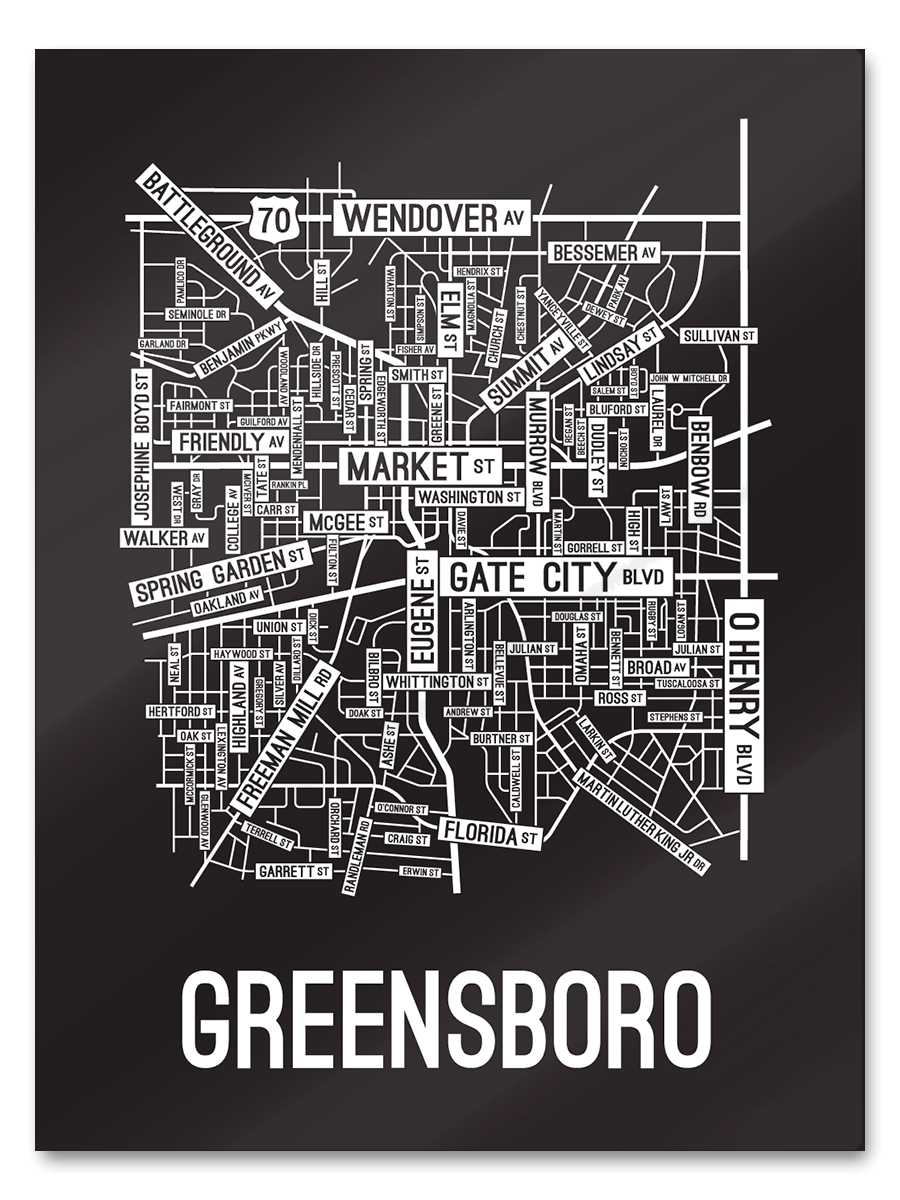 Our Greensboro, North Carolina street map is a tribute to the streets around Market, Eugene, and Gate City Blvd.