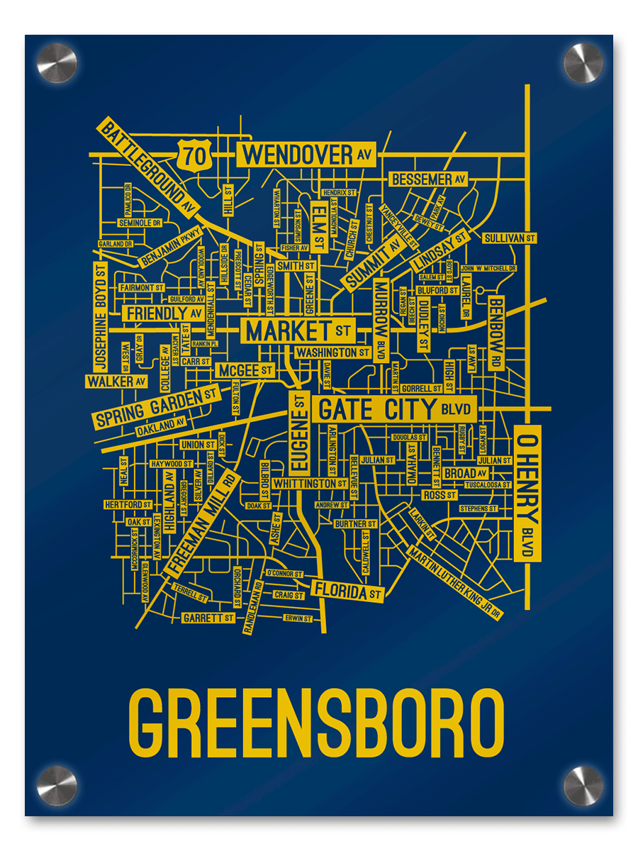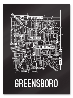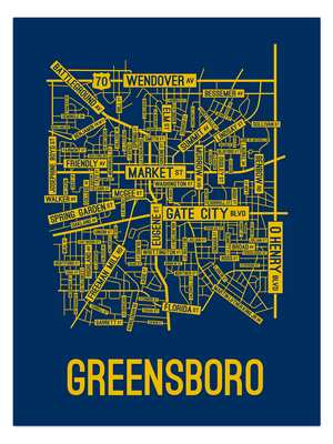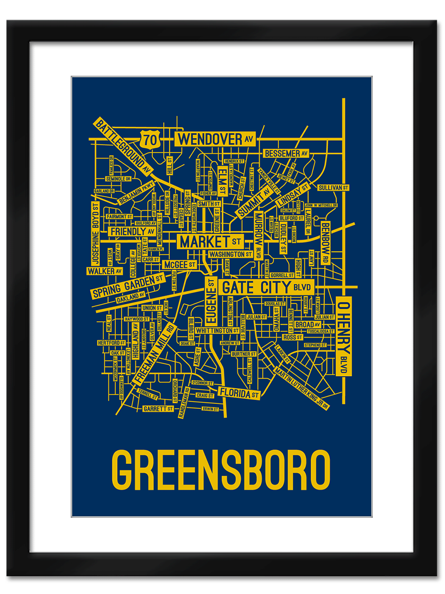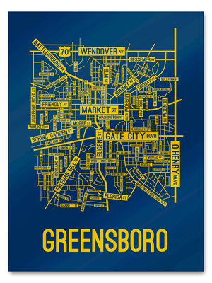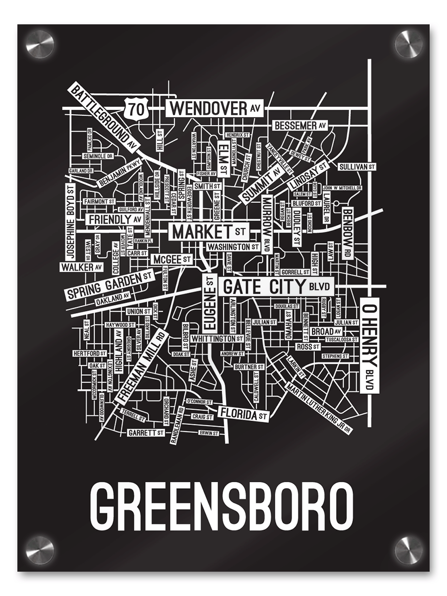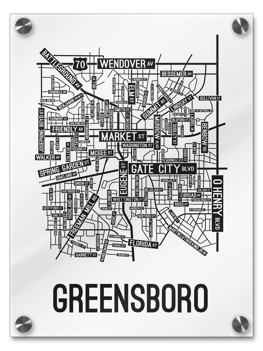 Our Greensboro, North Carolina street map is a tribute to the streets around Market, Eugene, and Gate City Blvd.
