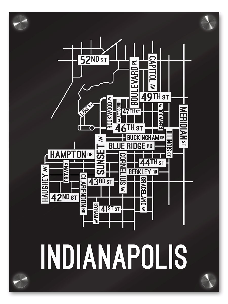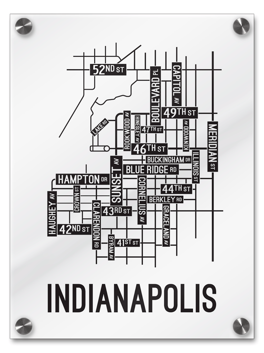 Printed on 1/4” thick cast acrylic and anchored to the wall with four stainless steel standoffs for secure and stylish wall hanging.