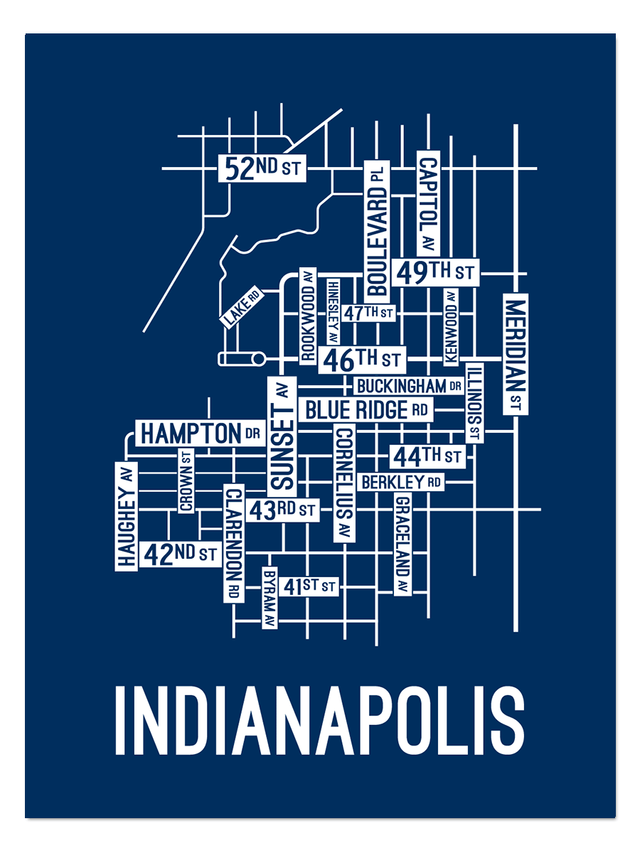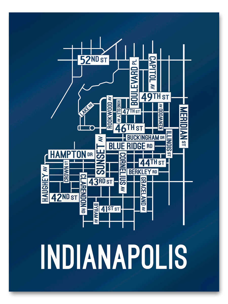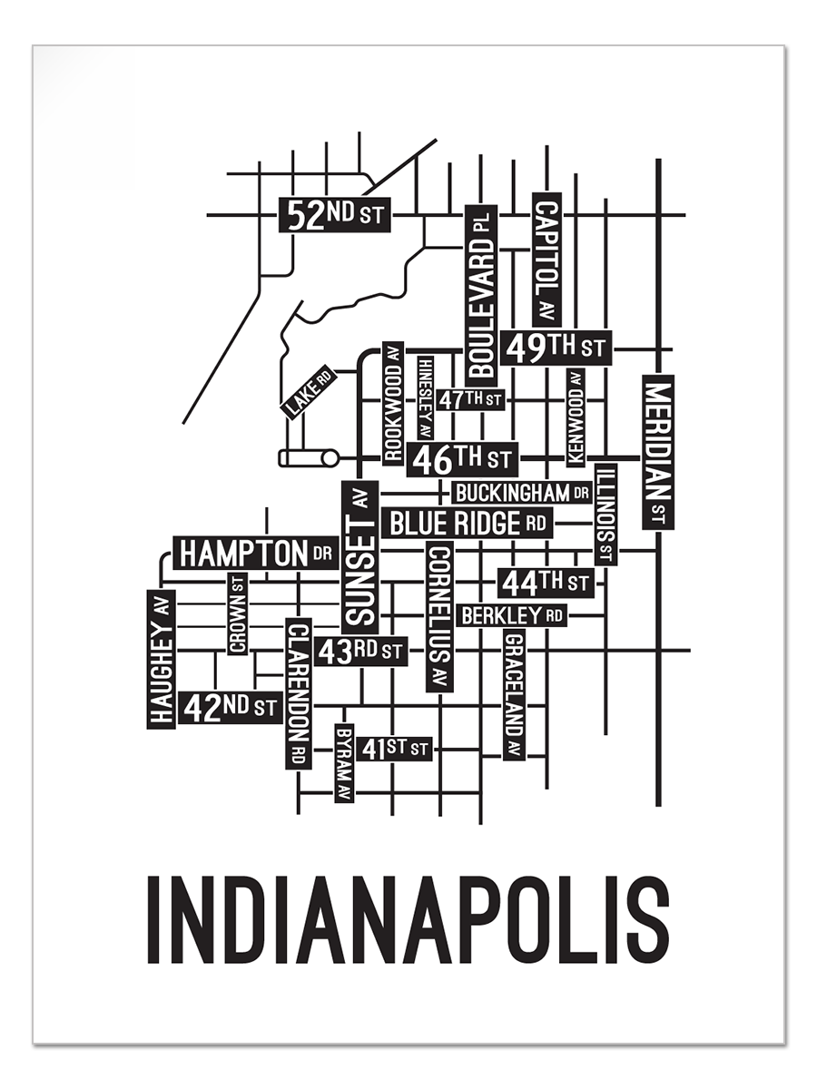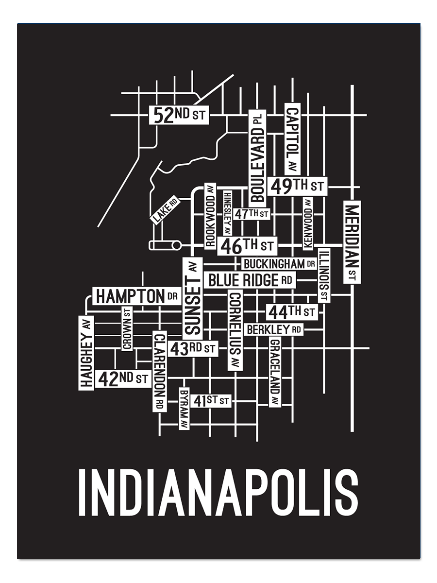 Our Indianapolis, Indiana street map features the streets around Sunset Ave, 46th Street, and Hampton Drive.