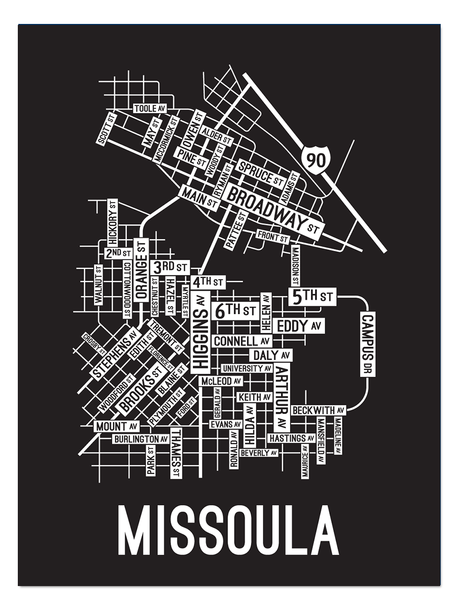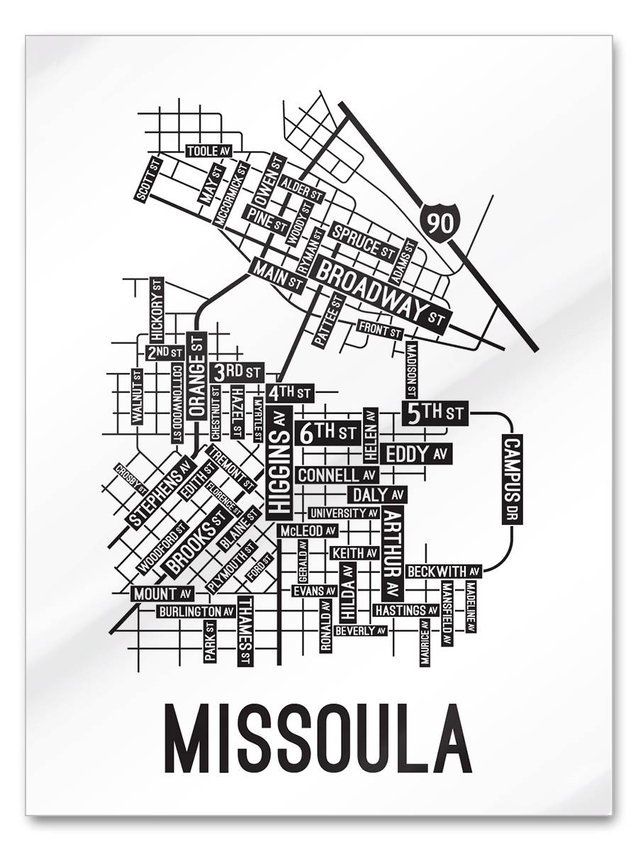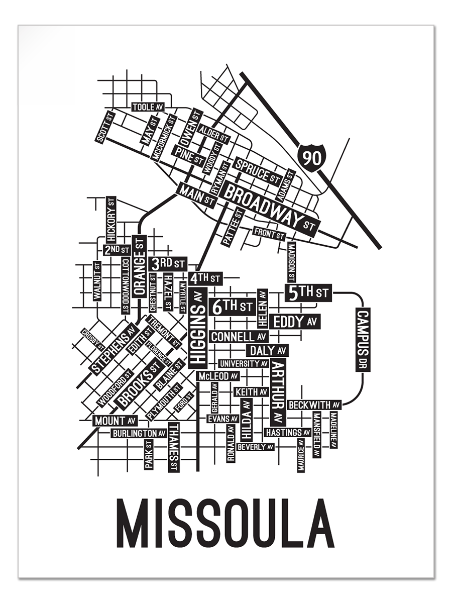 Our Missoula, Montana street map features the streets and avenues around Higgins, Eddy, Arthur, and Daly.