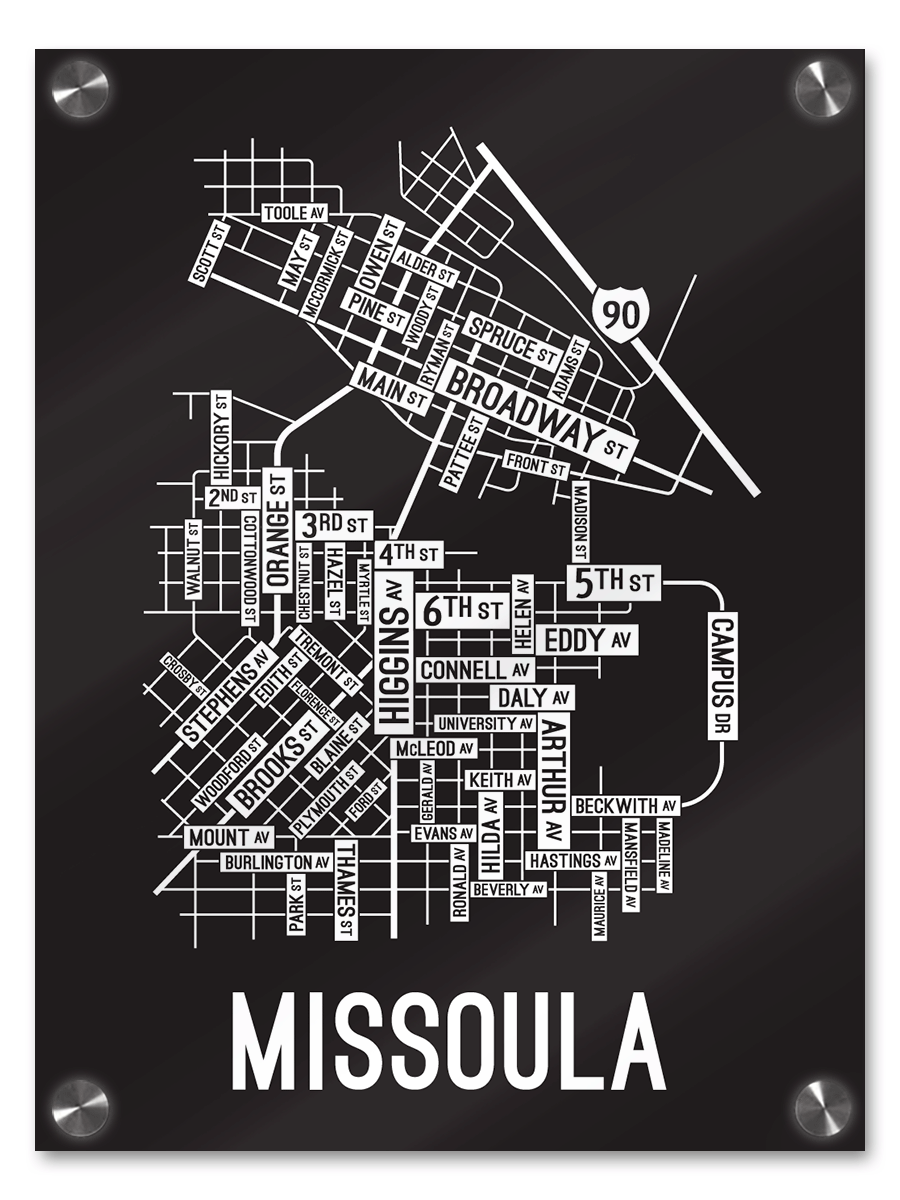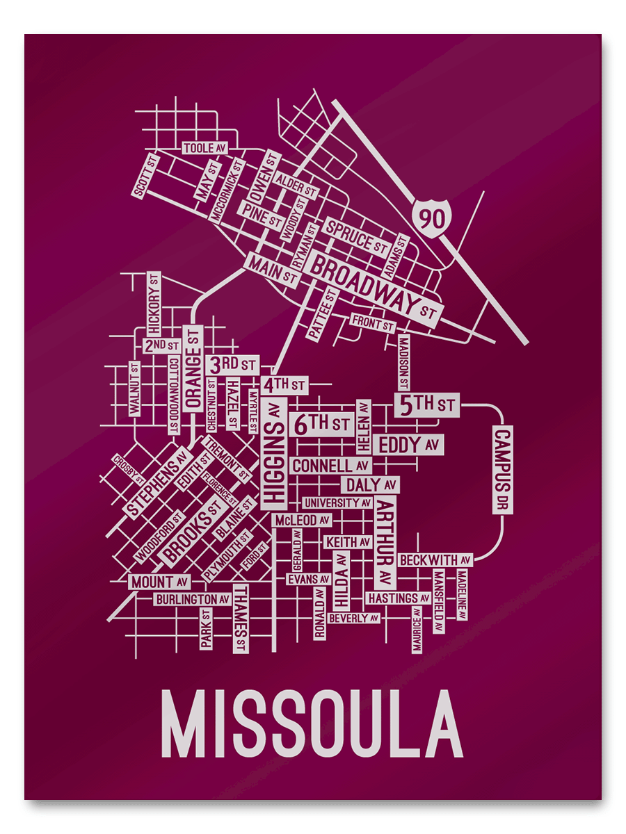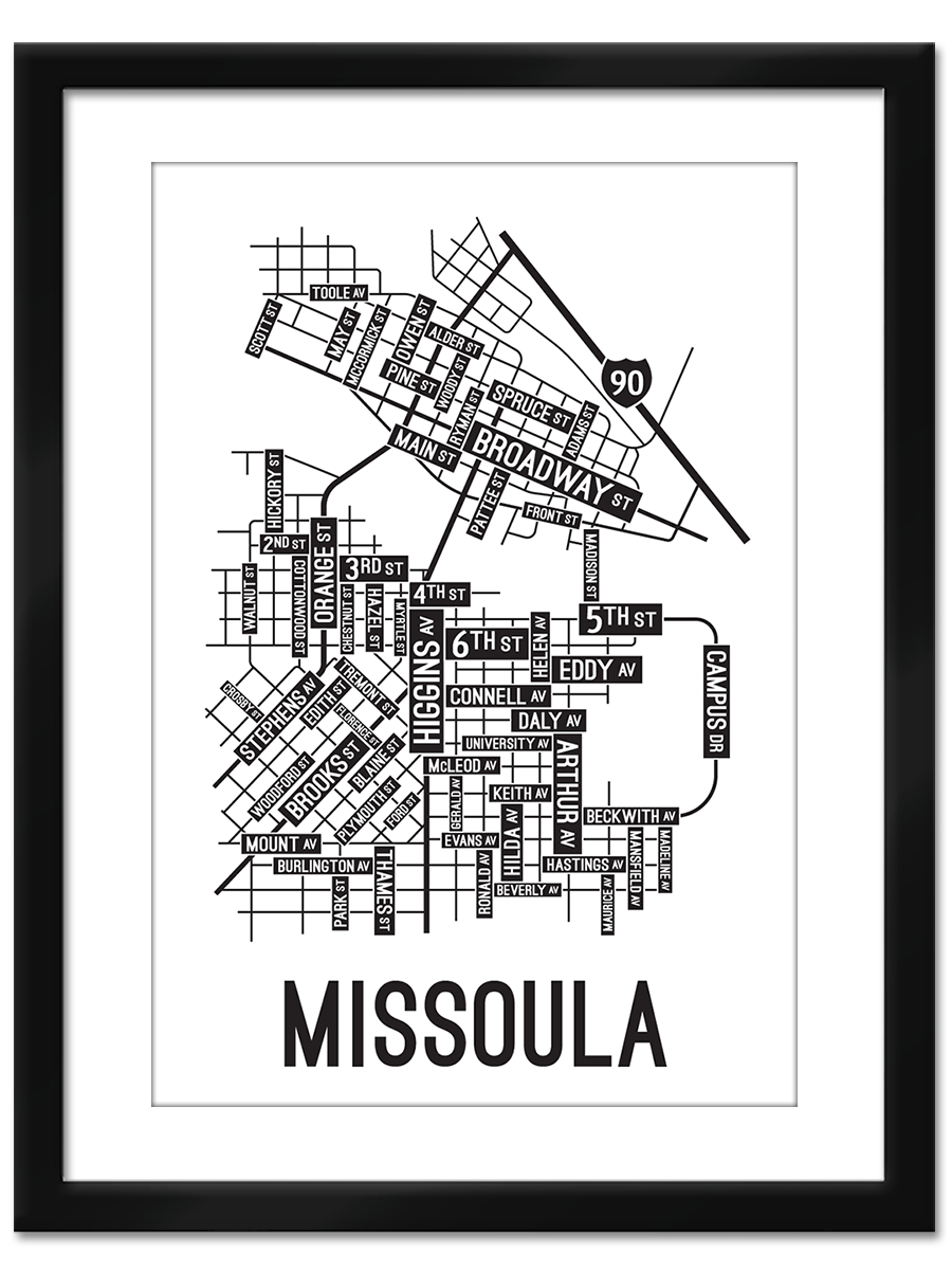 Our Missoula, Montana street map features the streets and avenues around Higgins, Eddy, Arthur, and Daly.
