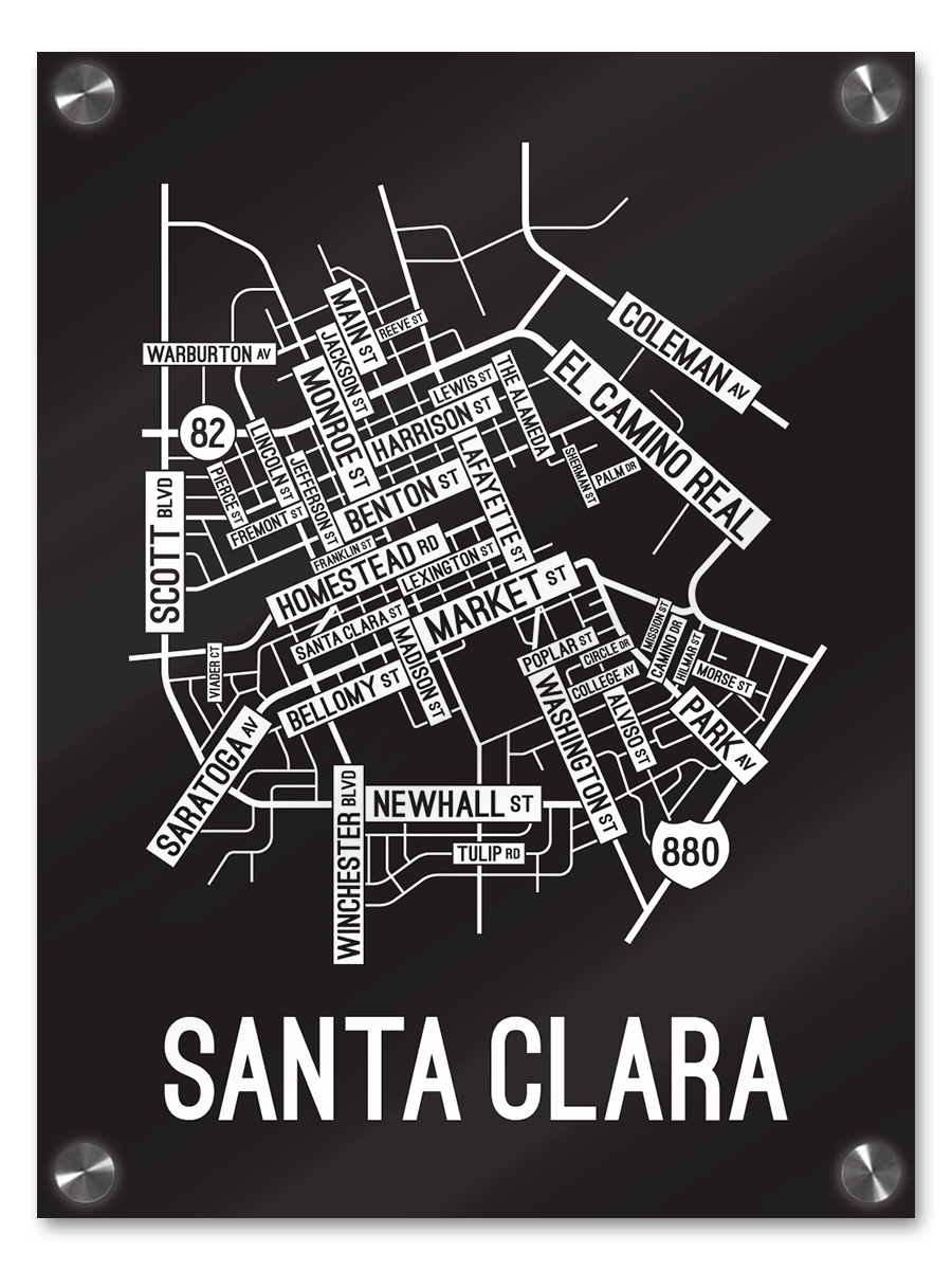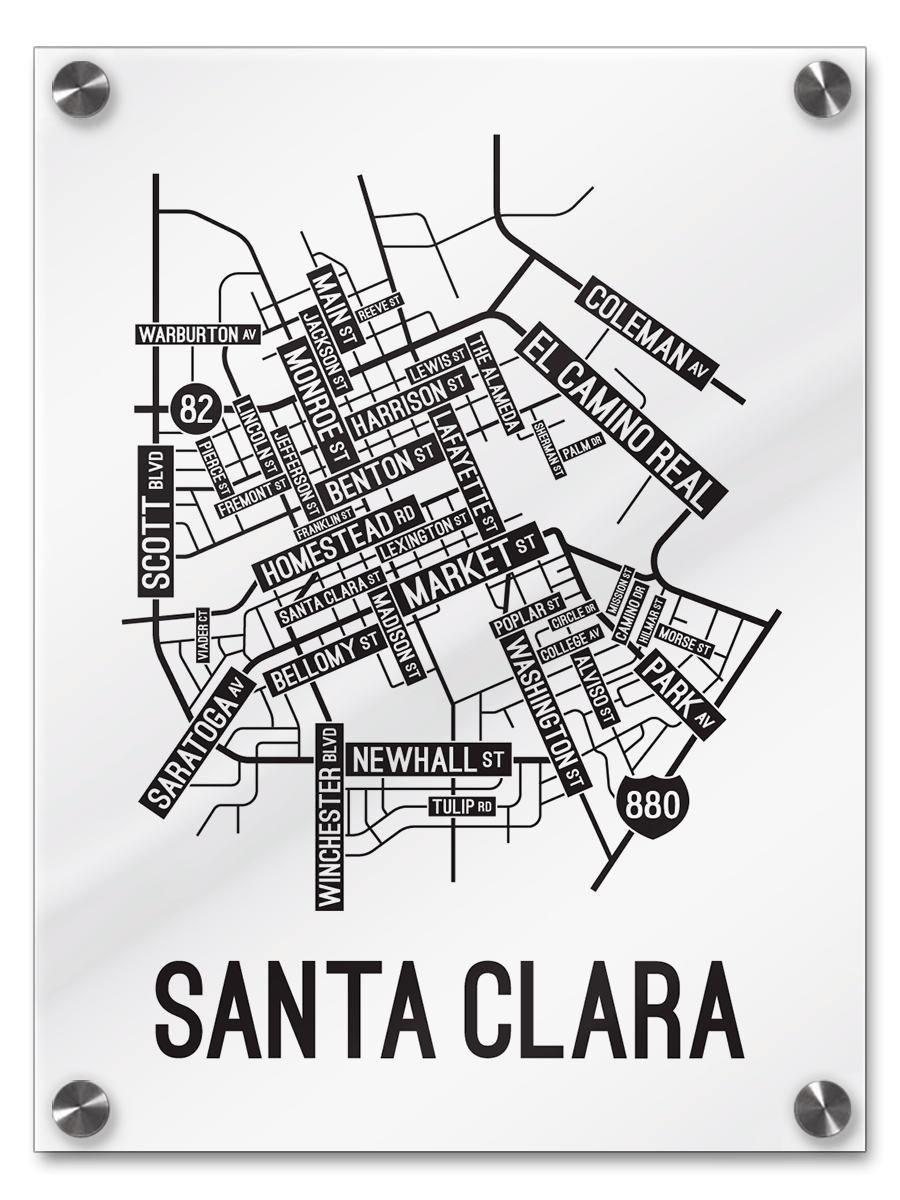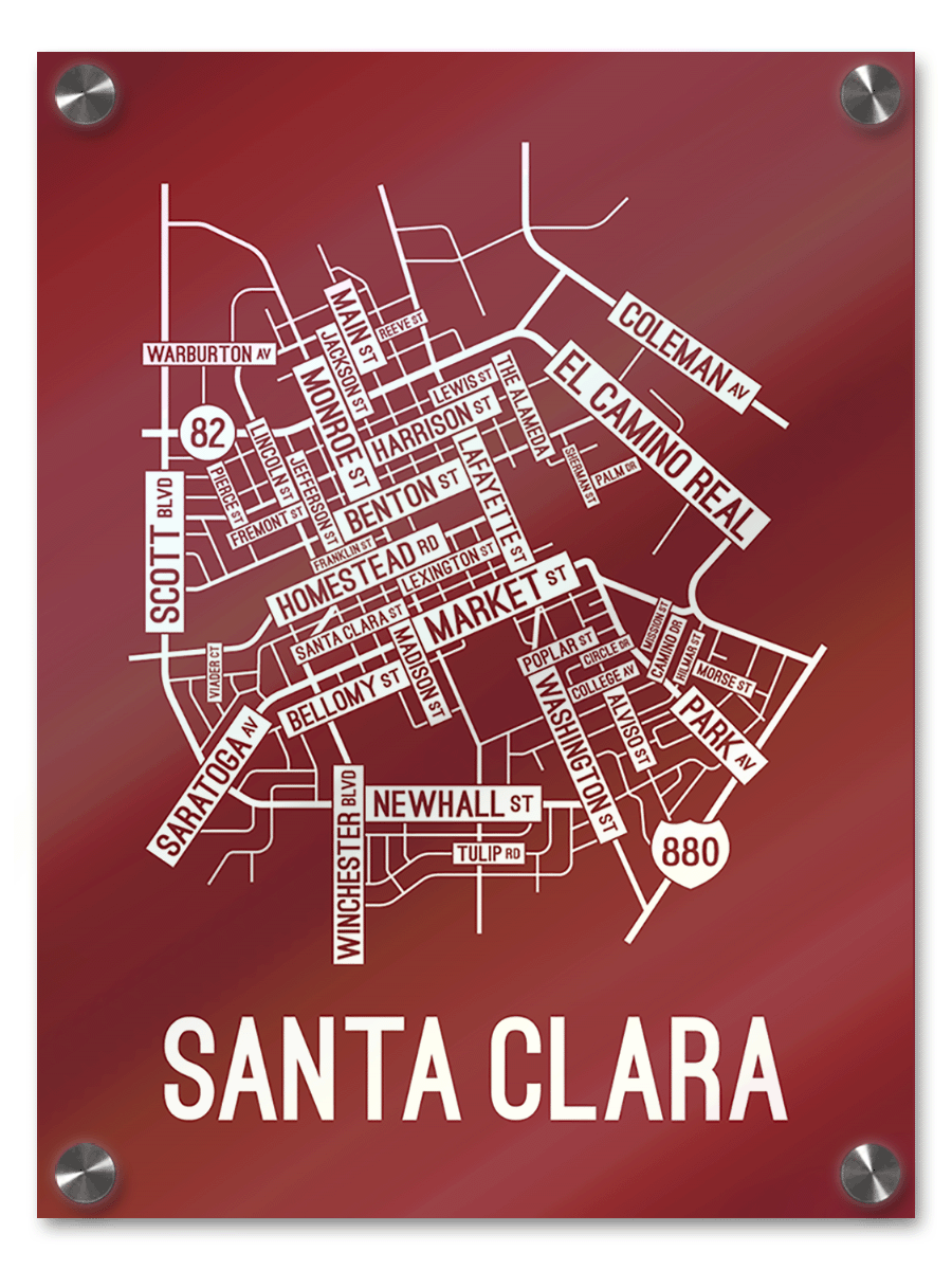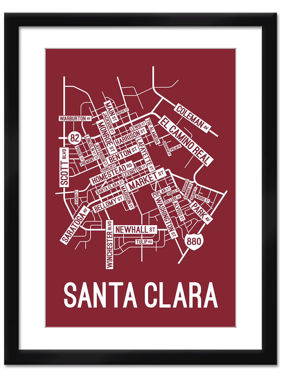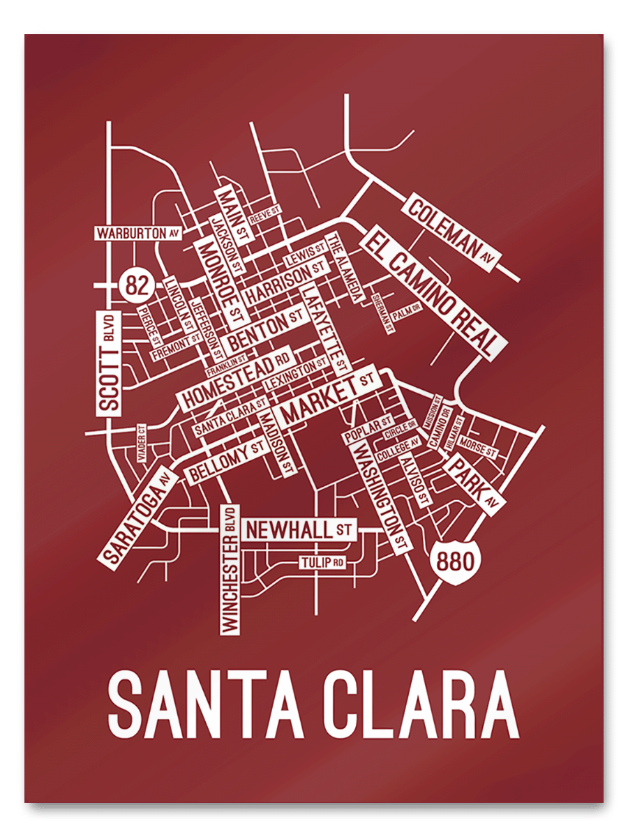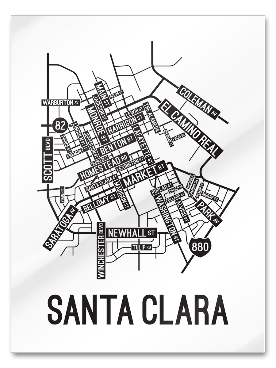 Our Santa Clara, California street map is a tribute to downtown and the streets around The Alameda, Lafayette, Homestead, and El Camino Real.